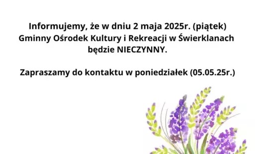 Urząd Gminy Świerklany informuje że Punkt Selektywnej Zbiórki Odpadów Komunalnych (PSZOK) z powodów technicznych będzie nieczynny w dniach 9 - 11 grudnia 2025 r.